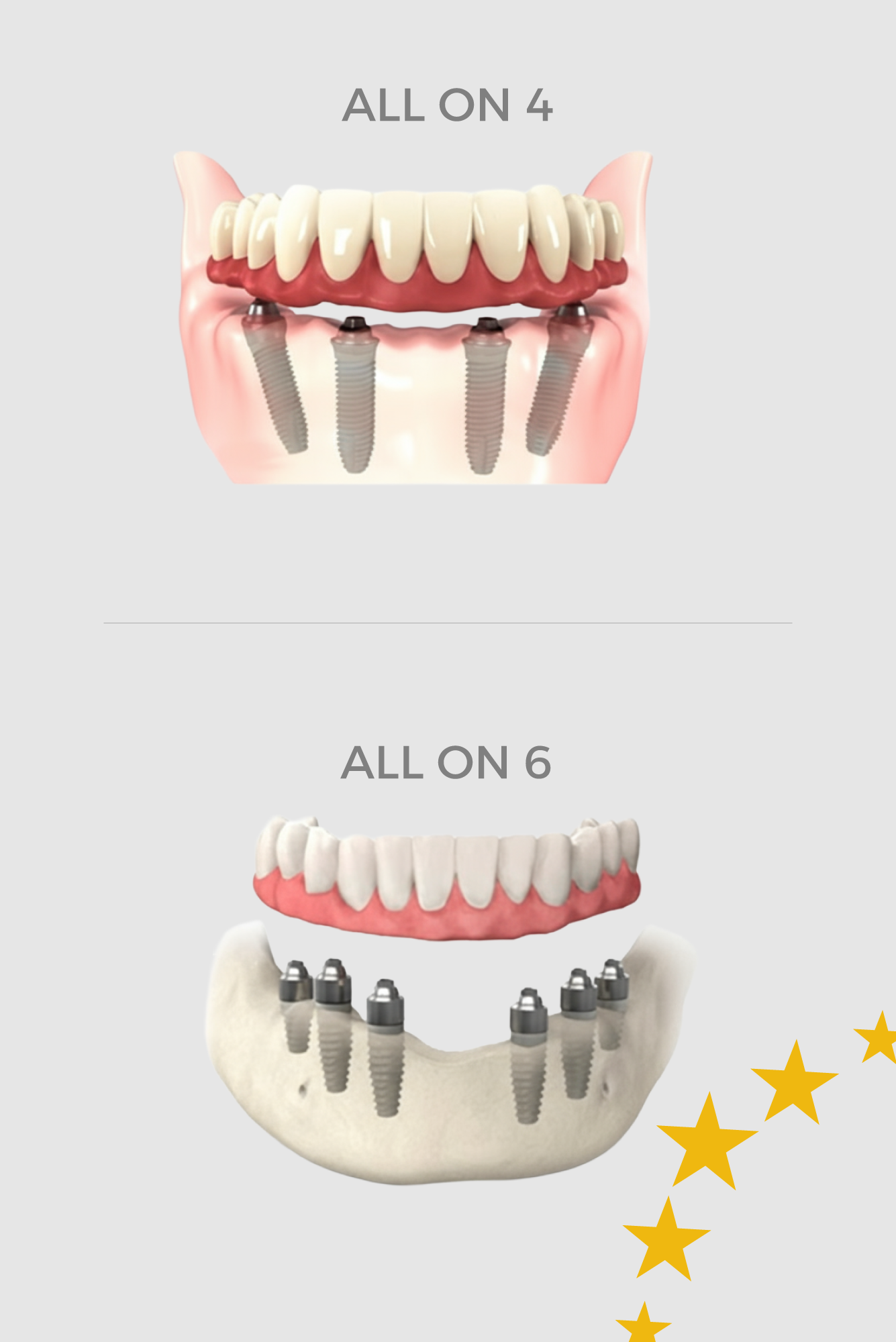 All-on-4 and All-on-X dental implants, bone grafts, sinus lifts, gum grafts, zirconia crowns, dentures, surgical wisdom tooth extractions, root canal treatments, teeth whitening, professional cleaning, deep cleaning, and dental fillings.